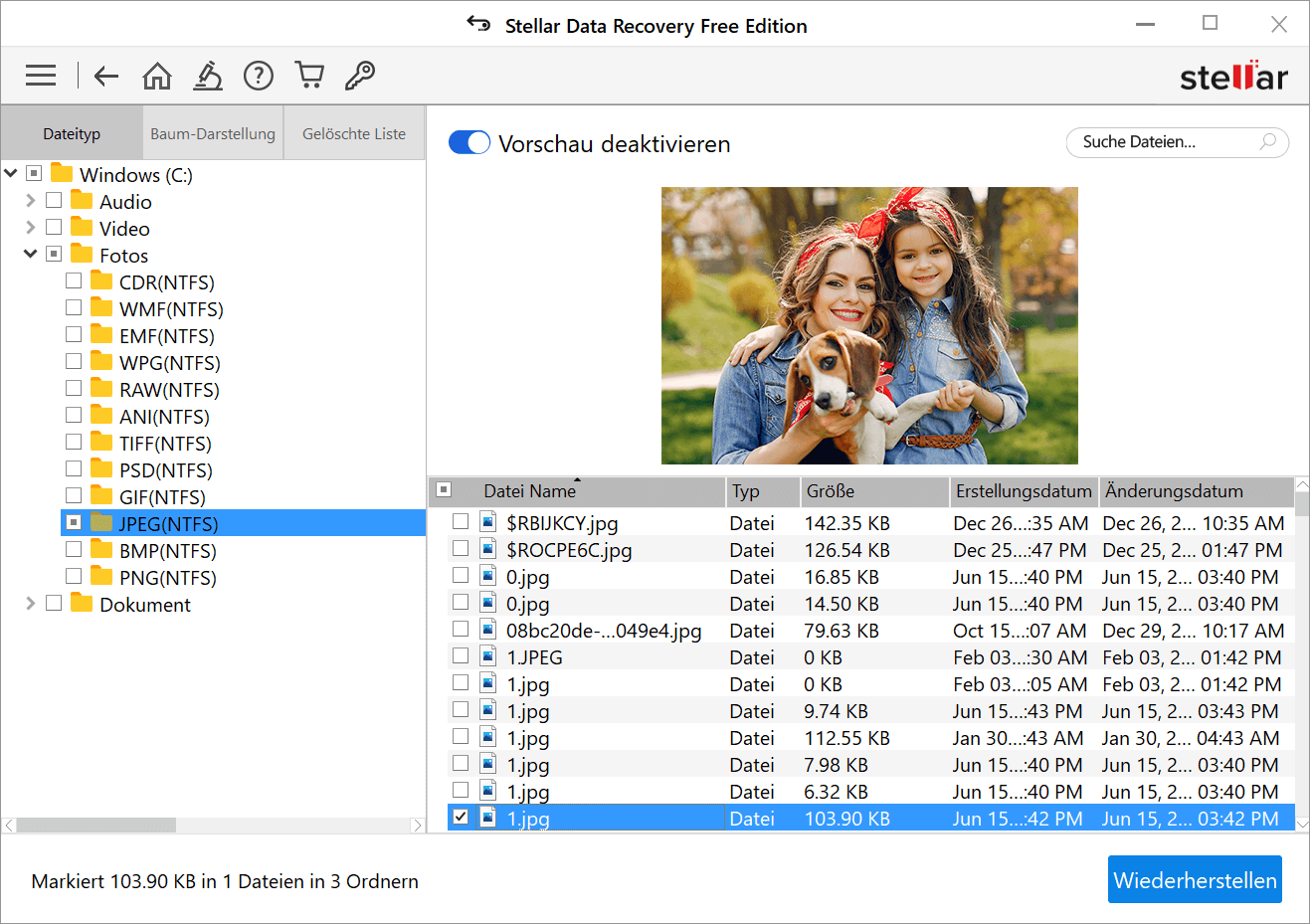Stellar Data Recovery Software stellt verlorene Daten wie Fotos, Videos, Dokumente, E-Mails in nur 3 einfachen Schritten wieder her, z.B. "Auswählen", "Scannen" und "Wiederherstellen". Diese Datenrettungssoftware ist kostenlos und stellt bis zu 1 GB verlorene Daten von formatierten oder beschädigten Speichermedien wieder her.
