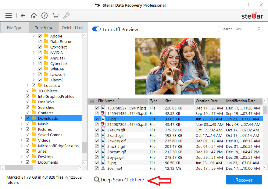 h) If you are not able to find desired files, click ‘Click Here’ link at the bottom to run a ‘Deep Scan.’