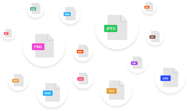 Puoi riparare file immagine di formato JPEG, TIFF, DNG,HEIC, ARW, CR2, CRW, ERF, MRW, NEF, NRW, ORF, PEF, RAF, SR2, RW2 e SRF.
