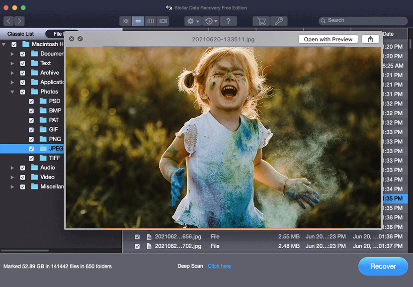 Stellar Data Recovery Free Edition for Mac is an indispensable file recovery software that helps you recover your deleted files from Mac or Mac-based external hard drive. The software allows you to free scan a drive and free preview all your deleted files. Also, the software provides an option to recover files up to 1 GB for free.