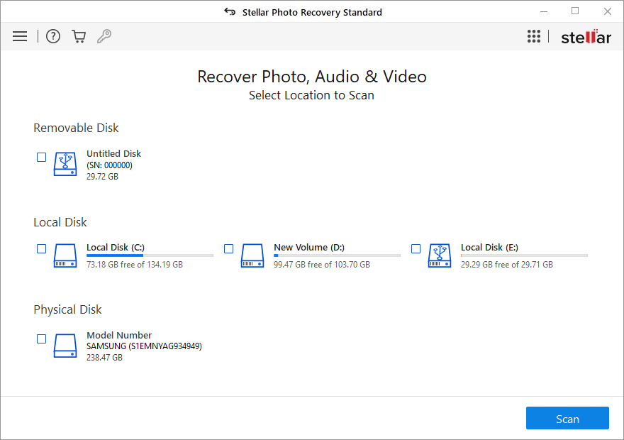 Note: Stellar Photo Recovery software only recover the deleted photos, videos. It does not repair any kind of corruption if exist in images or in videos.