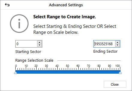 • Click Advanced Settings to select the range of media to create an image for a specified region.