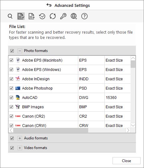 Advanced Settings in Stellar Photo Recovery contain below options to customize and speed up the recovery process:
