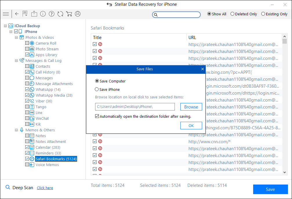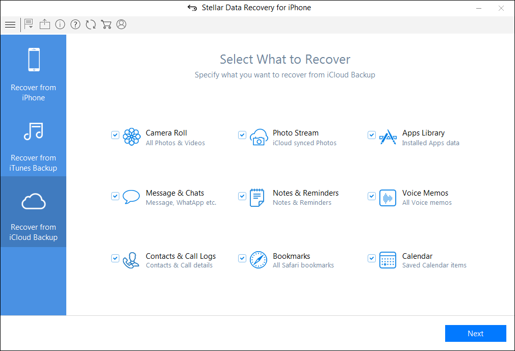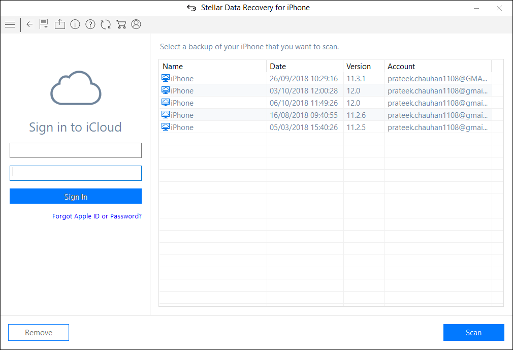 The free demo version of Stellar Data Recovery for iPhone allows you to scan and preview files from iPhone, iCloud, and iTunes backup, and to save them you need to register the software.